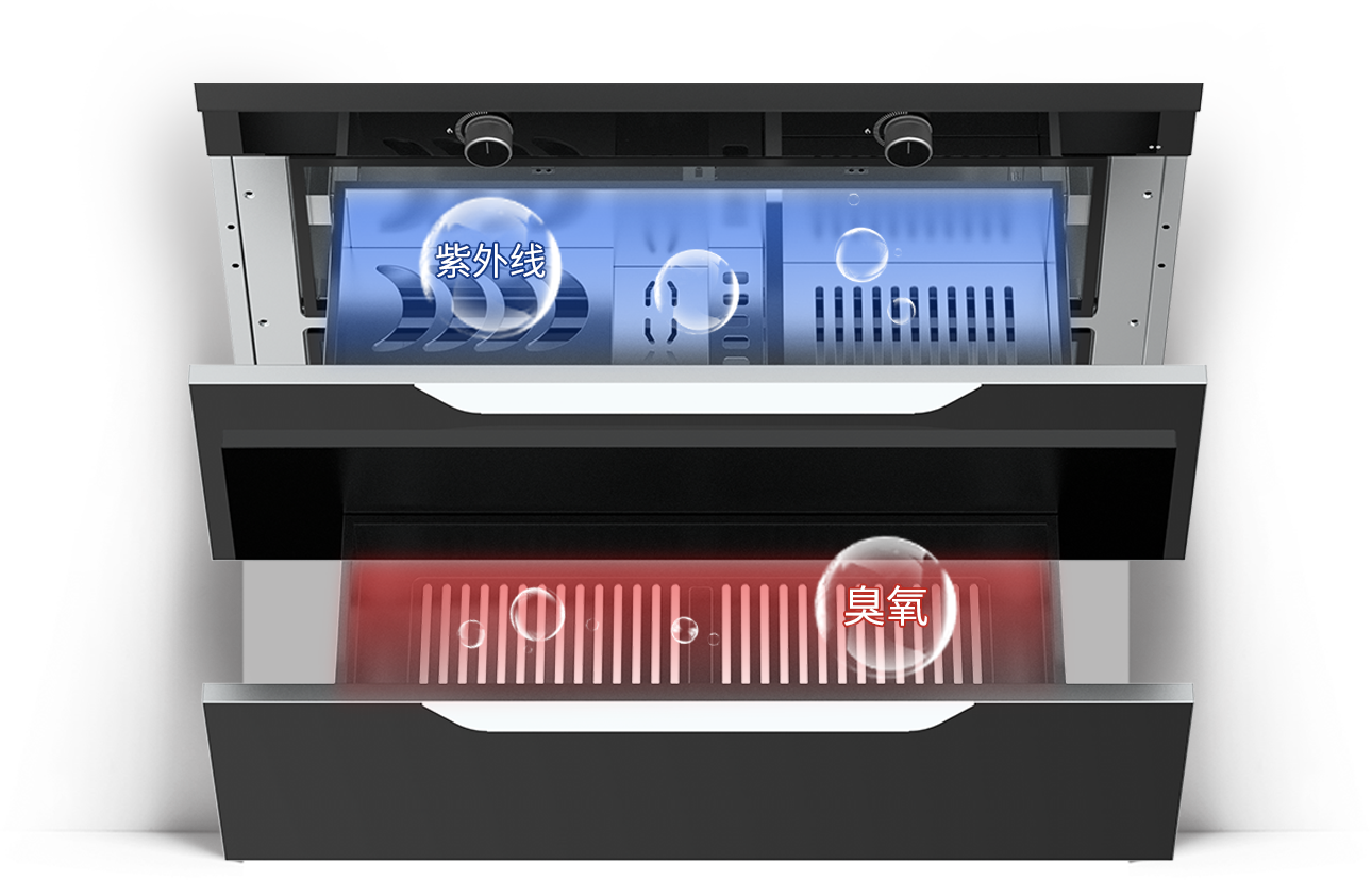 國家二星級認證消毒柜,創新“2+1”消毒模式,紫外線、臭氧、高溫三重消毒